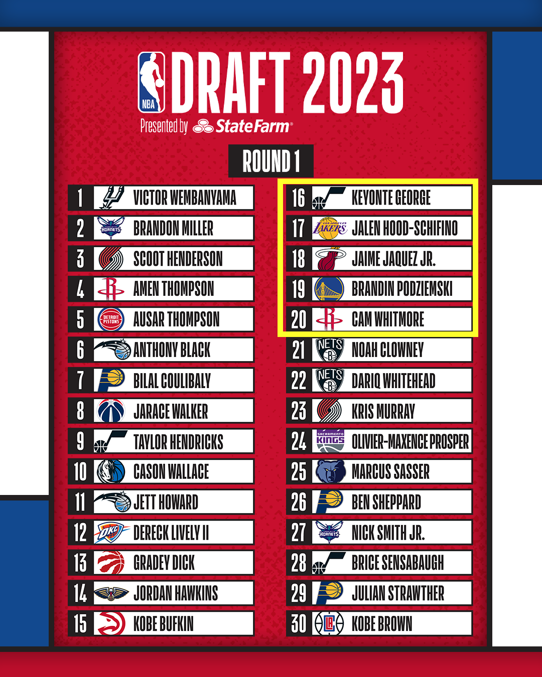 排在他前面的是基扬特乔治(16顺位),排在他后面的则是小海梅哈克斯(18顺位)、波杰姆斯基(19顺位)、惠特莫尔(20顺位)。